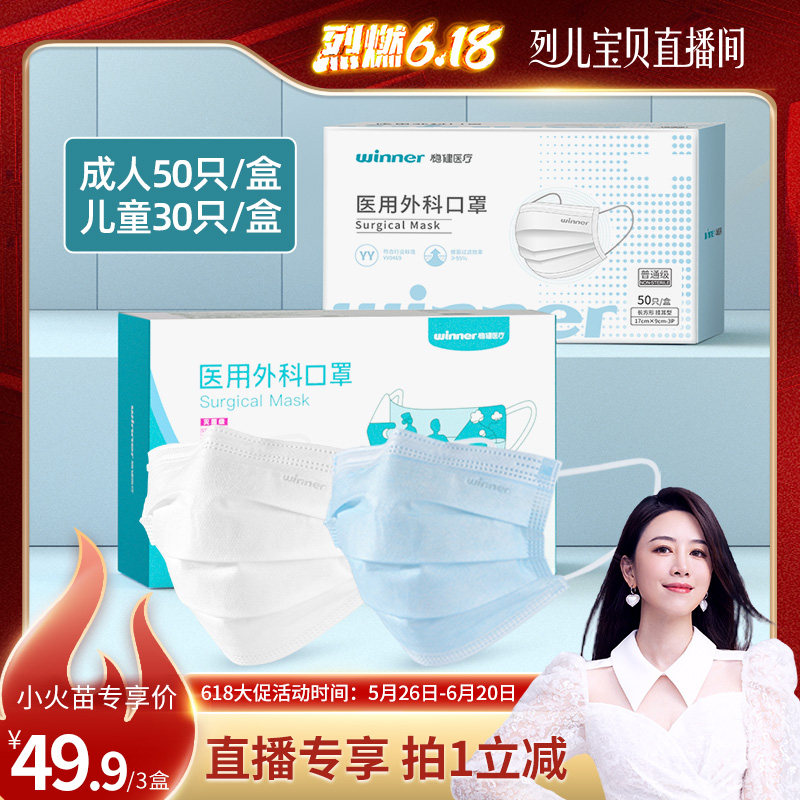 【190】【烈儿专享】稳健医用外科口罩一次性医护专用三层防护独立包装