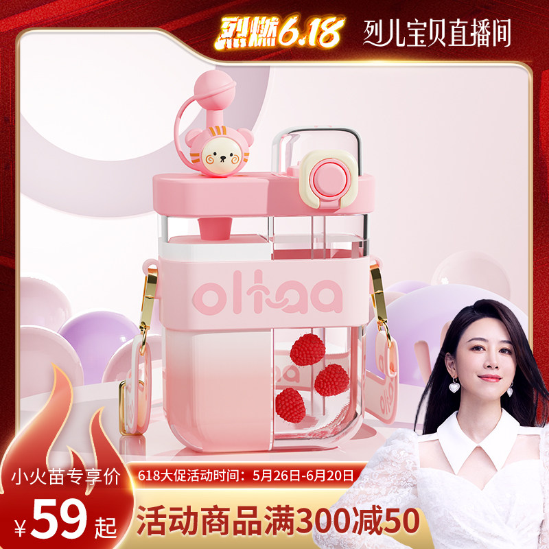 【217】[烈儿专享]杯子带吸管夏季女高颜值儿童分隔水杯双饮tritan塑料杯