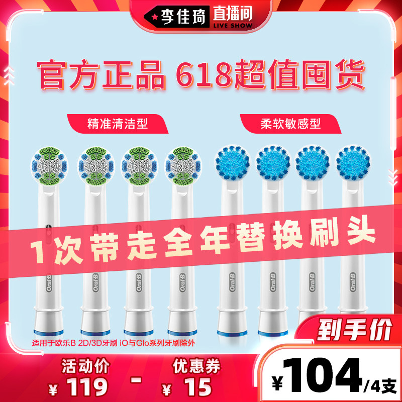【41】【李佳琦直播间】欧乐B电动牙刷通用原装替换刷头4支装