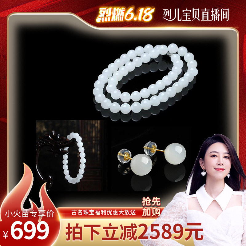 【106】【烈儿专享】 Gloire/古名"天然和田白玉项链 手链 耳钉三件套