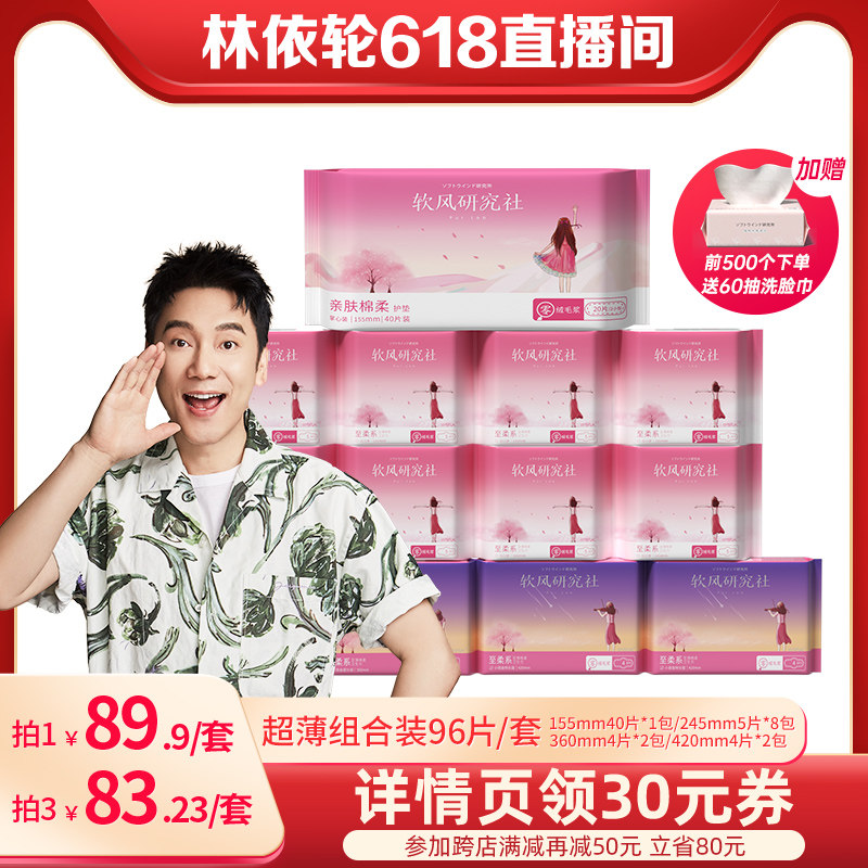 【48】【林依轮直播间】软风研究社卫生巾极薄0.035姨妈日夜用13包96片
