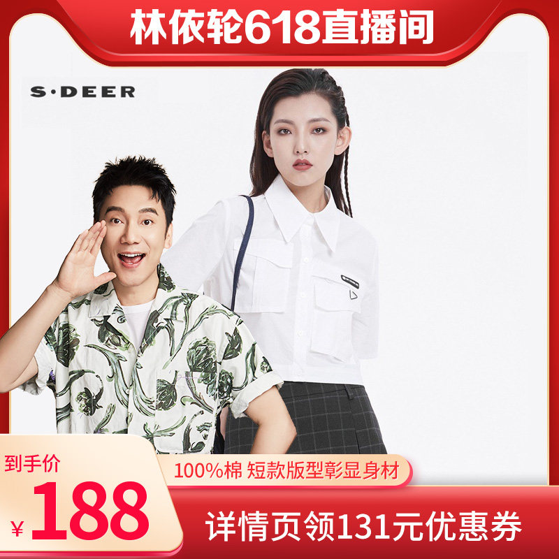【36】【林依轮推荐】sdeer圣迪奥新品设计感短袖高腰工装衬衫S22260406