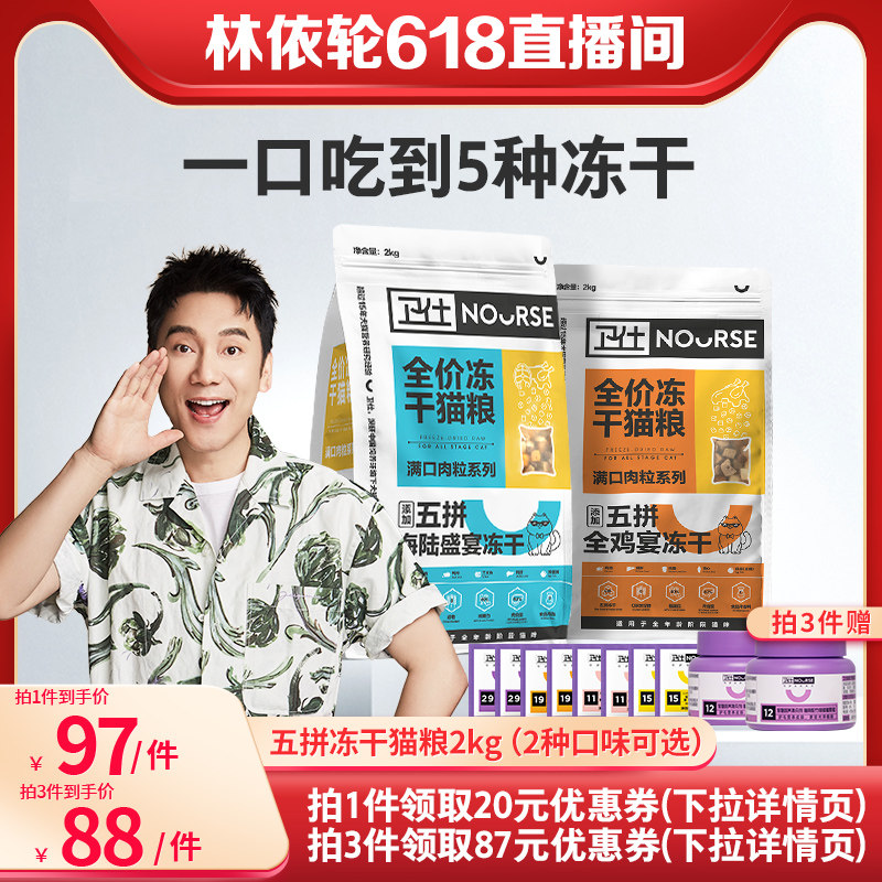 【39】卫仕五拼冻干猫粮2kg十大品牌幼猫成猫粮热销榜全价发腮增主食肥