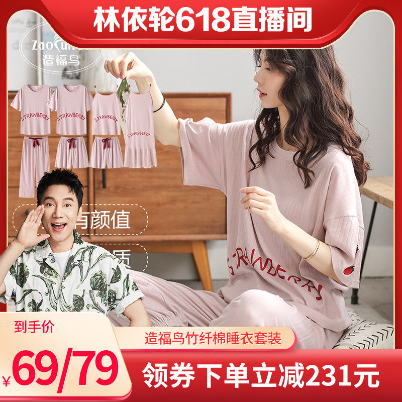 【16】【林依轮推荐】造福鸟2022年新款夏季竹纤棉短袖睡衣女家居服